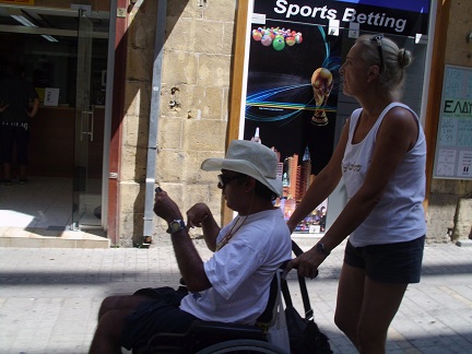 Salute a tutti voi, miei cari ragazzi, come va!? Quest’oggi, come vi avevo già promesso, vi racconterò della mia vacanza a Cipro. Io, come forse già saprete, sono un disabile al 100%, bisognoso d’ogni cosa. Quest’anno, come probabilmente vi avevo già accennato prima di partire, dovevo necessariamente, per completare la mia ricerca sui templari, andare lì, toccare con mano tutto ciò che c’era, osservare, con molta attenzione, ogni cosa che potesse essere rilevante per scoprire finalmente l’origine dell’ingente fortuna dei Cavalieri Templari. La mia idea, in altre parole, era quella di riuscire a coniugare l’esigenza improrogabile di continuare la “Mia Analisi Storico-Giornalistica” col “Dovere Psico-Fisico” di farsi una “Bella Vacanza”; ottemperare a questo nobilissimo intento, però, è stato al quanto ostico. Andiamo avanti, però, con ordine. Io, questo particolare viaggio miei cari signori, volevo già farlo l’anno scorso. Lastagione passata, però, sembrò troppo complicato organizzare. Stavolta, invece, io e mia madre, abbiamo cercato d’organizzarci per tempo e bene. La nostra analisi delle varie offerte, riguardanti quella splendida isola sempre baciata dal sole, è iniziata a metà maggio. Mia madre e io, infatti, da quel momento in poi, abbiamo controllato le offerte per e-mail quasi ogni giorno; mia madre, poi, appena poteva andava in agenzia a controllare la validità delle offerte viste assieme alla nostra “Operatrice Turistica” preferita di nome serena. Uno “Studio Certosino” e “Molto Snervante” di tutte le “Proposte di Viaggio” per quella “Specifica Meta”. Questo particolare screening, in poche parole, portava via parecchio tempo, perché principalmente cercavamo un hotel con il miglior rapporto qualità-prezzo e che rispondesse a tutta una serie di requisiti indispensabili per il “Soggiorno” di un disabile. Noi, infatti, cercavamo un volo per “Cipro-Nord” senza troppi scali e un hotel adattoall’esigenze di una “Persona Disabile”. L’attesa svolta, a tale situazione di sfibrante stallo si ebbe soltanto a metà luglio, quando mia madre mi ha detto che era tutto risolto e che lei, assieme a Serena, aveva trovato un buon albergo a Kyrenia a poche decine di kilometri dalla “Grande Capitale del Nord” chiamata Nicosia. Essa, pero, come poi ho scoperto, essendo Cipro politicamente divisa in due, la sua capitale (come tutte le città cipriote) ha per così dire la “Doppia Denominazione”: una turca e un’altra greca. Nicosia, infatti, si chiama Larnaka per i greci e Lefkosia per i turchi. Un altro esempio, di questa doppia denominazione, è Kyrenia che ha come secondo nome Girne. Torniamo, però, all’inizio di questa interessantissima, ma stancante vacanze. Quella “Santa Donna” di mia madre, pur di accontentarmi quest’anno, ha prenotato l’albergo per due settimane: dall’8 al 22 agosto. La partenza, infatti, era da Napoli e aveva due differenti scali: Rimini e Antalya, mentreinvece, era a Erkan. Il volo, in breve, durò fino a pomeriggio inoltrato. Io, però, prima di continuare, devo avvertirvi, questa vacanza è piena di colpi di scena, la cui maggioranza non sono belli. Il primo si è avuto ancora prima di partire: mia cugina, la mitica Irene Prota, non è riuscita a organizzarsi le vacanze con la propria famiglia e ha chiesto di accodarsi al nostro viaggio. Io, all’inizio, ero un po’ titubante a portarla con noi, ma poi si è dimostrata una “Vera Risorsa” per me e mia madre, ma perché il nostro Antonio Aroldo, dice così? Andate avanti con la lettura e saprete tutto! La partenza dell’aereo, in un primo momento, era verso le 17:00, ma poi è stata spostata a dopo le 13:00. Io, purtroppo però, quell’8 agosto, come a mio solito in questi casi, mi sono fatto prendere dall’ansia di far presto e mi sono bloccato sul bagno, per ben tre ore, perché dovevo fare pipi! Un altro bel problema, poi, è stata la situazione di mia cugina Irene. Lei, infatti, essendosiaccodata a noi all’ultimo minuto, aveva non poche difficoltà affinché l’agenzia le desse il biglietto e l’ok a partire insieme a noi. La mia dolcissima Irene, difatti, è riuscita a ottenere il biglietto, il giorno stesso della partenza. L’aereo, almeno in teoria, sarebbe dovuto restare a terra soltanto un quarto d’ora- venti minuti, giusto il tempo d’ultimare le operazioni di “Scarico” e “Carico” dei bagagli, ma invece, restammo tutti rinchiusi in quella “Fornace di Metallo” per quasi due ore e senza che si potesse andare in bagno. Molta gente, infatti, (soprattutto anziani) iniziava a spazientirsi. Io stesso, a dire la verità, in quei particolari momenti, ho cominciato a sentirmi nervoso e a sbarellare. Mia madre, infatti, a un certo punto mi ha detto, in napoletano stretto: “Se non la Smetti, ti Spacco la Faccia”! L’aereo, comunque, verso le tre è partito per il “Suo Giro”: Napoli-Rimini, Antalya-Cipro. Il volo, in poche parole, c’ha messo quasi quattro ore per arrivare adestinazione. Io, mia madre e mia cugina, infatti, siamo atterrati sull’isola, soltanto verso le 19:30 passate. Lì c’era, ad’aspettare il nostro arrivo, un autista di un furgone attrezzato per i disabili, che a nome della “Viloratuor”, (il “Nostro Tour Operator”) c’ha accompagnato in hotel. L’albergo in questione, miei cari amici, era un “Cinque Stelle”. Esso era situato vicino al centro di Kyrenia e si chiamava “Vuni Palace Hotel”. L’“Appariscente Struttura del Vuni”, come forse ho già evidenziato prima, era uscita fuori da quella “Profonda Analisi” delle varie offerte di cui ho parlato prima. Il Vuni, cioè, sembrava essere, almeno sulla carta, l’unico adatto alle nostre esigenze. Il nostro Tour Operator, infatti, c’aveva assicurato che il Vuni era l’unico albergo “Realmente Accessibile” per i disabili; purtroppo, così, non era. La camera assegnataci dall’amministra