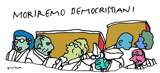 Vent’anni fa, fu dichiarato il decesso della cosiddetta “prima repubblica”. Lo sancirono, in stretta successione, Di Pietro, la Lega, il Msi e la Forza Italia in incubazione per volontà di Silvio Berlusconi. In un pugno di settimane il “sistema” della democrazia imperfetta (potere alla dc e ai suoi valvassori di centrosinistra (pli, pri, psdi, psi) e ruolo statico, senza alternanza di opposizione per il pci) o dell’ “arco costituzionale” (la conventio ad exludendum del Msi, “sdoganato” dal Cavaliere con la conseguente quasi vittoria missina alle elezioni comunali di Roma), fu – per dirla alla Renzi – “asfaltato”, per via giudiziaria e per via politica (con i neonati “azzurri” al governo contro ogni previsione della vigilia che dava per scontata la vittoria dei beneficiari di “mani pulite”, i comunisti). Poi il ventennio egemonizzato dalla presenza di Berlusconi nell’agone della partitocrazia, presenza realizzatrice di un’alternanza trano-cav e sì-cav al governo. Con la progressiva disintegrazione dell’identità nazionale italiana, del suo pluralismo di idee, della sua ricchezza culturale, sociale, economica e, anche, perché no, politica. Infine un biennio, l’attuale, di progressiva omologazione al centro dei due ex poli della ex destra e della ex sinistra ormai “differenziati”, si fa per dire, da indistinti distinguo bizantini. Due governi destra-sinistra-centro giunti a chiudere il cerchio del ventennio con un ritorno alla… dc. Sì. Se tutto andrà come sembra, siamo sul punto di tornare alle origini dell’Italietta a sovranità limitata messa al potere sulle rovine ancora fumanti della nazione sconfitta nella seconda guerra mondiale. Con un’unica differenza, rispetto ad allora. Dal 1948 al 1993 l’egemonia della democrazia cristiana aveva comunque una sorta di contrappeso nell’esistenza di un pci che – comunque condannato al non governo – poteva contare su un vasto consenso di base e su un partitoquadrato e volitivo. Oggi il pci non soltanto si è dissolto (peraltro era il suo destino, come era stato scritto già da Jalta o con la nota – ma ben celata – “svolta di Salerno”) ma i suoi epigoni “democratici” non soltanto si sono molto sbiancati rispetto ai loro padri ma stanno rischiando l’estinzione anche come organizzatori di apparato. Non sono al governo, valgono il due di picche nelle sfide interne (primarie in fieri) e stanno lasciando agli ex dc di “sinistra” tutto il “cocuzzaro” come dimostrato dall’emergere dei vari Letta, Franceschini, Renzi. Ma – come si dice? - se Atene piange Sparta non ride. Anche dall’altra parte della barricata (una pseudo barricata…) i democristiani, di destra, sono egemoni. Non a caso sono ben saldi al governo con Letta. Dagli Alfano in giù. Toh, gli stessi che hanno annunciato lo “strappo” e il voltafaccia pro-Letta, proDc, nonostante le dimissioni consegnate qualche ora prima a Berlusconi. E così vent’anni di fuga dalsistema unipolare democristiano si stanno risolvendo nella riesumazione del cadavere eccellente, quello guidato allora dall’accattone De Gasperi (beneficato dall’elemosina di un milione di dollari che il grand’uomo andò a pietire dal padrone Usa, il Vincitore) e oggi da un triunvirato di “nuovi diccì” camerieri della finanza, dei poteri d’oltreoceano, delle multinazionali a cui svendere l’Italia. Moriremo democristiani? Vorrebbero proprio così. E ci dicono pure che quella del governo delle mezze tacche sia una medicina di rigore, tasse e salva-Italia benefica, da bere tutta d’un fiato, o senza più fiato: decidete voi. Ugo Gaudenzi
