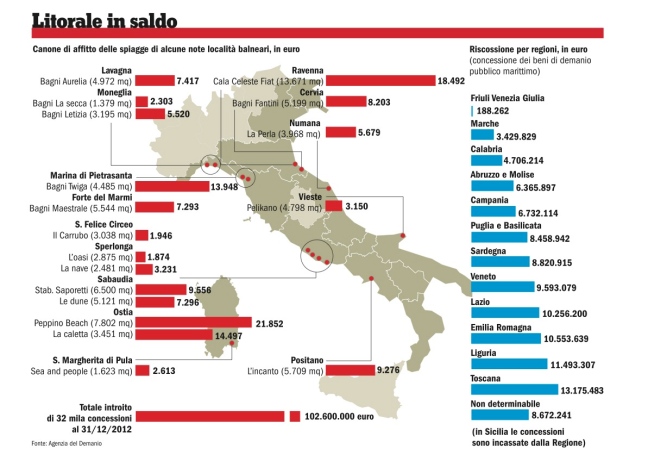 Gli ombrelloni sono in magazzino. Ora possono uscire i lobbisti. Sono tanti, al governo, in parlamento, negli enti locali, a darsi da fare per conto dei 32 mila concessionari di stabilimenti balneari. Il loro autunno si annuncia molto più caldo dell’estate: è in gioco il futuro di uno dei mestieri più protetti della Repubblica. La minaccia liberista ha due nomi olandesi: Frits Bolkestein e Neelie Kores. La seconda, come commissario Ue alla concorrenza, nel gennaio 2009 ha aperto una procedura di infrazione contro l’Italia. Motivo? Le concessioni ai lidi sono contrarie ai principi della concorrenza e della libertà di stabilimento, disciplinata dalla celebre direttiva Bolkestein, perché non vengono assegnate attraverso gara e, di fatto, vengono rinnovate in automatico di sei anni in sei anni. Oltretutto rendono pochissimo. Nel 2012 l’agenzia del Demanio ha incassato 102,6 milioni di euro dagli oltre 30 mila imprenditori dellespiagge. In media, poco più di 3 mila euro a testa per stabilimenti che possono superare i 10 mila metri quadri e i 10 mila euro a testa di abbonamento stagionale. Questi avamposti del turismo d’élite offrono servizi di spa, attività sportive, discoteche, ristorazione, kinderheim, imbarcazioni da diporto, animazione. I loro canoni crescono di pochi euro all’anno con gli adeguamenti Istat. In quanto ai ricavi del settore, la cifra ufficiale si aggira sui 2 miliardi di euro per un milione di addetti (2 mila euro di ricavi all’anno per ogni lavoratore). Ma gli spazi per l’evasione sono ampi, come dimostrano i blitz ferragostani della Guardia di Finanza, e c’è chi calcola un valore effettivo degli incassi circa quintuplo (10 miliardi di euro). L’introduzione delle gare sui lidi, soprattutto nelle zone di maggior pregio, equivale a una colossale rivalutazione fondiaria che potrebbe contenere il prelievo fiscale. È vero che c’è chi tira la cinghia. Che c’è la recessione e il turismoarranca. Ma se un moderato come il premier Enrico Letta ha messo la valorizzazione delle concessioni balneari fra gli obiettivi del suo programma “Destinazione Italia”, forse esiste un margine di recupero rispetto a lidi che fatturano milioni di euro all’anno. Il versiliese Twiga, fondato dal quartetto Flavio Briatore-Daniela Santanchè-Marcello Lippi-Paolo Brosio, potrebbe sborsare qualcosa in più dei 14 mila euro annuali che paga adesso per occupare 4.484 metri quadri di suolo demaniale. E il Twiga paga tanto in confronto allo stabilimento Saporetti di Sabaudia, meta estiva di Francesco Totti e signora (meno di 10 mila euro per 6.500 metri quadri), o rispetto all’Incanto, il lido monopolista della spiaggia grande di Positano, che occupa oltre 5 mila metri quadri al prezzo di un monolocale (9.200 euro). Ma il motto dei lobbisti balneari è: l’asta non s’ha da fare. Sul fronte della proroga delle concessioni attuali fino al 2020 c’è un folto schieramento bipartisan. Per il Pdl, ilsottosegretario allo Sviluppo Simona Vicari e l’ex ministro berlusconiano agli Affari regionali, Raffaele Fitto. Per il Pd, il viceministro dell’Interno Filippo Bubbico, con la collega viareggina Manuela Granaiola, da sempre al fianco dei balneari versiliesi, il sottosegretario all’Economia Pierpaolo Baretta e lo stesso responsabile democrat del Turismo, Armando Cirillo. Prima hanno tentato di sdemanializzare la fascia occupata dagli stabilimenti e venderla ai proprietari. Dopo che l’ipotesi è tramontata per palese impercorribilità giuridica, la lobby lettino&ombrellone ha subito trovato un’alternativa. L’uovo di Colombo sta in un documento riservato spedito dall’Agenzia del Demanio al ministero di riferimento, l’Economia, guidato da Fabrizio Saccomanni, il 9 ottobre scorso ossia il giorno prima che Saccomanni deliberasse la cessione alla Cassa depositi e prestiti degli immobili pubblici affittati a uffici e ministeri. Il documento cambia in profondità le linee guida in materiadi concessioni demaniali marittime. Oggi funziona così. Lo Stato affida la gestione delle concessioni balneari alle Regioni che la trasferiscono ai Comuni per la definizione del canone. Ma i Comuni non beccano un euro perché tutti i soldi vanno a Roma. Quindi, nella migliore delle ipotesi i sindaci non hanno interesse a tirare sul prezzo. Nella peggiore, vanno d’amore e d’accordo con i balneari che portano voti, benessere e spesso siedono nelle giunte comunali. La prima rivoluzione del 9 ottobre è che i proventi di ombrelloni e lettini vanno alle Regioni e non più allo Stato. Ma questa cifra sarà compensata da una pari decurtazione dei trasferimenti dallo Stato. Le Regioni perciò non guadagnano nulla ad alzare il prezzo delle concessioni e a litigare con i balneari, che si sono dotati di una schiera di sindacati battaglieri (Federbalneari Confindustria, Assobalneari Confimprese, Cna-Balneatori, Fiba Confesercenti, Sib-Fipe Confcommercio). In quanto alla procedura di gara, l’articolo4 del progetto avanzato dall’Agenzia di Stefano Scalera, uomo di Vittorio Grilli nominato nell’ottobre 2011, è una chiara occasione da gol per chi ha già una licenza. Intanto, non si fa menzione di aumentare il canone. L’offerta più vantaggiosa è valutata “sulla base di un piano economico-finanziario di copertura degli investimenti”, come per le concessionarie autostradali. Insomma, chi più investe in nuove strutture fisse o amovibili ha più possibilità di aggiudicarsi la concessione. Non è una buona notizia per chi pensa che le spiagge italiane siano già fin troppo costruite. Per avvantaggiare i concessionari esistenti il comma j dell’articolo 4 è quello decisivo. Il 40 per cento del punteggio complessivo si basa sulla “professionalità acquisita dall’offerente nell’esercizio di concessioni di beni demaniali marittimi per finalità turistico-ricreative e la professionalità acquisita relativamente all’area alla quale si riferisce la procedura”. Insomma, chi ha