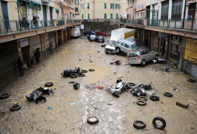 "Sarà lutto cittadino, il giorno dei funerali della vittima dell’alluvione di stanotte". Mentre su Genova continua a piovere, il sindaco Marco Doria incontra la stampa e va all’attacco delle lungaggini burocratiche che hanno impedito la partenza delle grandi opere sul torrente Bisagno e sul suo affluente Fereggiano che sono straripati. Il sindaco : "Stato di calamità per Genova " - "Chiedo lo stato di calamità per la città di Genova, che la Regione inoltri subito la mia richiesta al governo", dice Doria. Mentre la situazione peggiora con il passare delle ore e il torrente Polcevera - il secondo grande torrente che attraversa la città - rischia di rompere gli argini, il sindaco ammette di non avere antidoti a breve termine, per evitare altre tragedie: "Non dirò mai state tranquilli ai genovesi, perchè non mentirò mai ai cittadini. Genova è una città malata e fragile, ha un corpo malato che non si può curare con l’aspirina. Ci vogliono i lavorisulla copertura del Bisagno, lo scolmatore del Fereggiano, gli antibiotici: noi le abbiamo varate queste opere, ma sono bloccate dalla burocrazia e dai ricorsi. Senza di esse, nulla potrà evitare il disastro". Mentre negozianti e residenti di interi quartieri del centro di Genova spalano il fango dopo la tragica ondata di piena del Bisagno che ha ucciso una persona, Doria dichiara: "Nessuno ci aveva preavvertito che certe cose avrebbero potuto accadere nella giornata di ieri. Non avendo avuto informazioni in tal senso, il nostro sforzo è stato quello di affrontare l’emergenza in tempo reale, comportandoci come se ci fosse uno stato di Allerta 2, anche se non era ancora stato proclamato. L’allerta 2 è stato diramato soltanto alle 11.30 di questa mattina (venerdì)". "Non voglio far polemiche sui modelli previsionali, non è il mio campo - ha detto Doria - non voglio nemmeno improvvisarmi meteorologo o dire io lo sapevo ma noi abbiamo affrontato la giornata sulla base di un avvisometeorologico regionale che parlava di alta probabilità di temporali forti ed emetteva un avviso, nessuna allerta". Burlando (Regione): "E’ la prima volta che il nostro modello previsioni sbaglia" - Ribatte il governatore della Liguria Claudio Burlando: "Quello che si è registrato ieri è un fenomeno mai visto che il nostro modello di previsioni non è riuscito a interpretare. Il modello però è attendibile perché fino ad ora ci ha consentito di non sbagliare mai nessun episodio grave". "Ieri sera - ha aggiunto -, mentre fino al bollettino delle 18 che indicava un’attenuazione dei fenomeni realtà e modello corrispondevano, alle 21 si è verificata una divaricazione tra il modello e quello che è accaduto in realtà". Scuole chiuse anche domani - L’allerta 2 è stata confermata sino alla mezzanotte di oggi sia su Genova che sui territori di Savona e La Spezia. Scuole chiuse anche domani, sabato. La chiusura riguarderà tutte le scuole di ogni ordine e grado pubbliche e private e deidipartimenti universitari. La vittima. Le acque del torrente Bisagno sono straripate alle spalle della stazione Brignole, a Borgo Incrociati, e nella furia hanno trascinato via un uomo di 57 anni, Antonio Campanella, residente a Marassi, che è stato travolto dall’acqua in via Canevari, a pochi metri dall’imbocco del tunnel di Brignole. La Procura di Genova aprirà un fascicolo ipotizzando il reato di omicidio colposo per la morte dell’uomo, che faceva l’infermiere ed abitava in via Bobbio, sulla stessa riva del torrente la cui esondazione ne ha provocato la morte. Arrestati sciacalli, fango nelle strade. Oggi le scuole e i mercati cittadini sono rimasti chiusi, così come molti uffici pubblici, dall’Inps alla Regione. Le strade intorno al centro sono state chiuse al traffico privato; anche via XX Settembre, nel cuore della città, è transitabile solo dai bus e dalle macchine del soccorso. Chiusi i sottopassi di accesso alla Valbisagno dal centro. Due sciacalli sono statiarrestati nella zona di Borgo incrociati, la più colpita, perchè sorpresi a rubare nei negozi devastati dalla piena del Bisagno. Metropolitana: ridotte le corse - La Protezione civile invita chi può a rimanere a casa e, se proprio necessario, "muovetevi solo con i mezzi pubblici", che peraltro in molte zone hanno limitato le corse. Anche il casello di Genova Est sulla A12 è chiuso; limitata tra Brin e San Giorgio la metropolitana, ridotte le corse dei mezzi pubblici in numerose zone. E già si calcolano danni per milioni nello stesso quartiere che pagò con altre vite umane nella grande alluvione del 1970, 44 vittime, e del 2011 in cui morirono sei persone tra cui due bambine. Viabilità - Circolazione completamente bloccata a Ponente. Lunghe code nella zona del ponte di Cornigliano e a Campi. In via Cantore i vigili faticano a far defluire le auto che trovano un "tappo" da piazza Vittorio Veneto. Questa situazione ha messo in ginocchio la viabilità sull’autostrada A10. Le autosono ferme in entrambi i sensi. <La viabilità ordinaria bloccata ha spinto molti automobilisti a utilizzare l’autostrada _ interviene Riccardo Rigacci, diretto del Primo Tronco Autostrade _ con le inevitabili conseguenze. Registriamo anche forti rallentamento sull’A7 verso Busalla>. Treno esce dai binari - Un treno partito da Genova e diretto a Torino è uscito dai binari per una frana a Fegino, una frazione alle spalel della città. Contuso il macchinista e due passeggeri. Le ruote del locomotore e dei due vagoni seguenti sono uscite dai binari ma il treno è rimasto in asse e non si è rovesciato. La circolazione ferroviaria tra Genova e Torino e tra Genova e Milano via Fegino è interrotta. Al momento viene utilizzata la linea via Busalla - Ronco Scrivia ma si registrano ritardi. Trasferiti i circa 170 viaggiatori su 4 autobus che li porteranno a destinazione. Enel - Circa 2000 genovesi sono ancora senza luce nei quartieri Foce, Marassi e San Fruttuoso, Molassana e nelcomune di Montoggio. Una task for