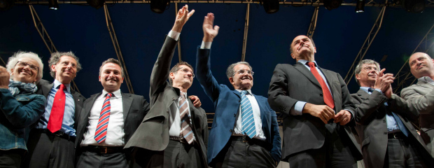 Bologna, Prodi a sorpresa in piazza col Pd Abbraccio con Bersani