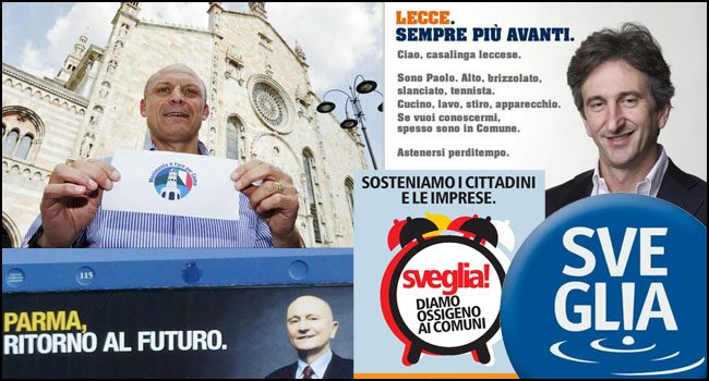 Dal Faro per Como all’Ape di Cassano Magnago. Da Ritorno al futuro al partito delle Nuvolea. Fino alla Lista utile per il miglior sindaco, che ha un progetto chiaro: «Noi crediamo in chi crede in Noi». E’ il fai-da-te della politica nel 2012, effetto collaterale della sfiducia nei partiti tradizionali, che da a chiunque la speranza di farsi eleggere. Con il trucco di Cetto La Qualunque: «Basta dire due cazzate e ti votano». Quel Faro sul lago di Como «Sto(p)per candidarmi». Palla al piede, si gioca. Pietro Vierchowod campione del mondo nella Spagna dell’82 e d’Italia con Roma e Sampdoria, scende in campo e si candida sindaco di Como. Del resto proprio qui lo ’zar’ esordì in serie A. Il suo Faro per Como illuminerà una formazione con tanti atleti e persino l’ex compagno di squadra Silvano Fontolan. Certo su entrambi i rami del lago di Como, un faro non s’è mai visto; ma al campo di calcio ne hanno trovato uno. L’ex stopper roccioso dovràsfidare la squadra di ’Forza Como’, che riunisce ex forzisti ed ex leghisti. Vola vola vola l’Ape Hanno avvistato un’Ape e ronza in terra padana. Non si tratta del movimento di Rutelli sotto mentite spoglie dopo l’effetto Lusi: il simpatico insetto, rappresentato nei simboli dall’Ape Maia, si presenta a Cassano Magnago, proprio nella terra di Umberto Bossi. «L’Ape è un movimento nuovo», spiega il suo promotore Rocco Andrisiani, punta infatti all’ «infedeltà politica». Il suo slogan: «Vola, vola, vola», alla ricerca del prezioso nettare. L’ex Pd va sulle Nuvole Corrado Parise, fuoriuscito dal Pd, si candida sindaco di Alessandria. ’Nuvole’ è la sua lista per rinnovare la politica giocando sul piano dell’anti-politica. Perché Nuvole è «una persona, un gruppo, ma anche un’idea». E allora scrive «vedi è facile fare una Nuvola» . L’effetto vorrebbe essere quello del ’be cloud’, ma il rischio di cadere dalle nuvole è alto. Advertisement Da Mo’ a Fa’ Lo scorso anno ilprefetto Mario Morcone, candidato sindaco partenopeo, lanciò «Il futuro è Mo’»., troncando il suo cognome e giocando con il dialetto. I napoletani fecero subito sapere che avrebbero preferito «Il futuro è Ma», nel senso di Maradona come allenatore al San Paolo. Quest’anno Morcone ci riprova Piercarlo Fabbio, attuale sindaco di Alessandria per il Pdl, che si ricandida con lo slogan «Piercarlo Fa». Certo, il Comune è sull’orlo del precipizio, la Corte dei Conti ha preannunciato il dissesto, il buco in bilancio si è trasformato in una voragine e la sua giunta è stata toccata dall’inchiesta sulla ’ndrangheta. Ma che importa, Piercarlo «Fa». Salga a bordo, cazzo Anche La Spezia ha il suo comandante. Enrico Schiffini si candida con Una nave in giardino. Il re delle cucine si era già presentato nel 2007 battendosi contro lo scavo dei fondali del porto. Ottenne un discreto successo, grazie anche alla campagna firmata Oliviero Toscani. Il pubblicitario spiegò che lo slogan ’Una nave ingiardino’, rappresentava una nave ’simbolica, fuori misura, fantastica’. Dopo cinque anni Schiffini riprova a salpare e attraccare. Il rischio è l’effetto Schettino. Emulando Formigli Basta con i politici ladri, con i loro rimborsi e i loro privilegi. Scende in campo l’antipolitica. Nella Verona delle liste pro Tosi, c’è chi si ispira a Corrado Formigli e come se fosse un talk si candida con ’Piazza pulita’. A La Spezia sono stati più ingegnosi: ’Via la Casta’. Pronti i diritti per una nuova trasmissione televisiva. Per chi ci Thiene Maria Rita Busetti, sindaco uscente della Lega Nord a Thiene (Vicenza) deve aver pensato che il nome della sua cittadina si presetava bene a un gioco di parole. Di qui il nome della lista civica che l’appoggia, Per chi ci Thiene, che si autodefinisce «un gruppo che si impegnerà e collaborerà assieme per una Thiene Migliore». Ritorno al Futuro Nella Parma commissariata, con assessori in manette e debiti da sanare, si presenta il nuovo. E’l’ex sindaco Elvio Ubaldi che riscende in campo per la terza volta con un abile slogan: ’Ritorno al futuro’. Ex democristiano, due volte sindaco, padre e mentore di quel Pietro Vignali che ora definisce un «essere non catalogabile» si candida con il sostegno dell’Udc. Ubaldi parla perfino sulla colonna sonora del film di Robert Zemeckis. Obiettivo: trasmettere speranza. Si ritornerà ai bei tempi in cui il sindaco era lui. Uno capace di progettare opere futuristiche come il Ponte Nord e la metropolitana con una linea che avrebbe trasportato quasi 100 mila persona al giorno, anche se tutta Parma ne conta meno di 200 mila. Buongiorno Italia, buongiorno Maria Debiti insostenibili? C’è una soluzione. Scende in campo la passionaria Wally Bonvicini: ’Buongiorno Italia! Siamo voi!’. «Un nuovo partito nazionale che parte da Parma» per proporre «un nuovo sistema economico e politico contro le banche che hanno generato la crisi». Bonvicini combatte contro le banche, vuole abolire Equitaliae l’anatocismo bancario. «Solo con quello si recupererebbe tutta la disponibilità di denaro che serve a risolvere ogni problema» fa sapere. E dire che ci hanno provato anche Domenico Scilipoti e Alfonso Marra. Non ci resta che il ’lasciatemi cantare’ di Toto Cutugno. Suona la Sveglia Andrea Paparo a Piacenza ha vinto le primarie del PdL con una percentuale bulgara dell’ 88 per cento, ma lui ci tiene a non presentarsi mai con quel simbolo. Nei suoi comunicati preferisce parlare di riscossa civile, bene comune e città intelligente. A sostenerlo persino la lista ’Sveglia’, formata da candidati giovanissimi. Tengo famiglia A Frosinone si candida un’intera famiglia: gli Sciacca. Il padre Alfredo è candidato per ’Gente Comune’ in una lista di sinistra, il nonno Giuseppe in quella del Popolo della Libertà che vuole come sindaco Ottaviani. Quanto al figlio di Alfredo ha scelto un’altra lista ancora. L’unione fa la 